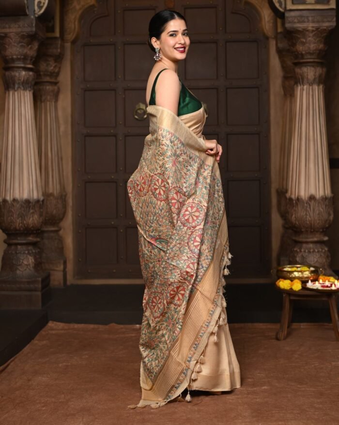 - Feature: Handloom woven with golden border
