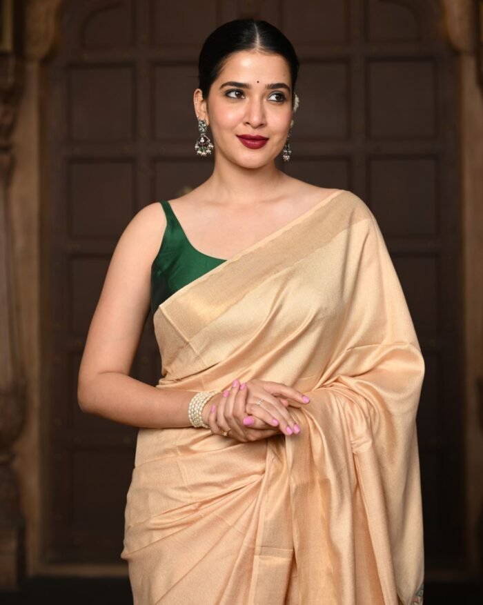Traditional handloom cotton silk saree with beautiful golden border.
